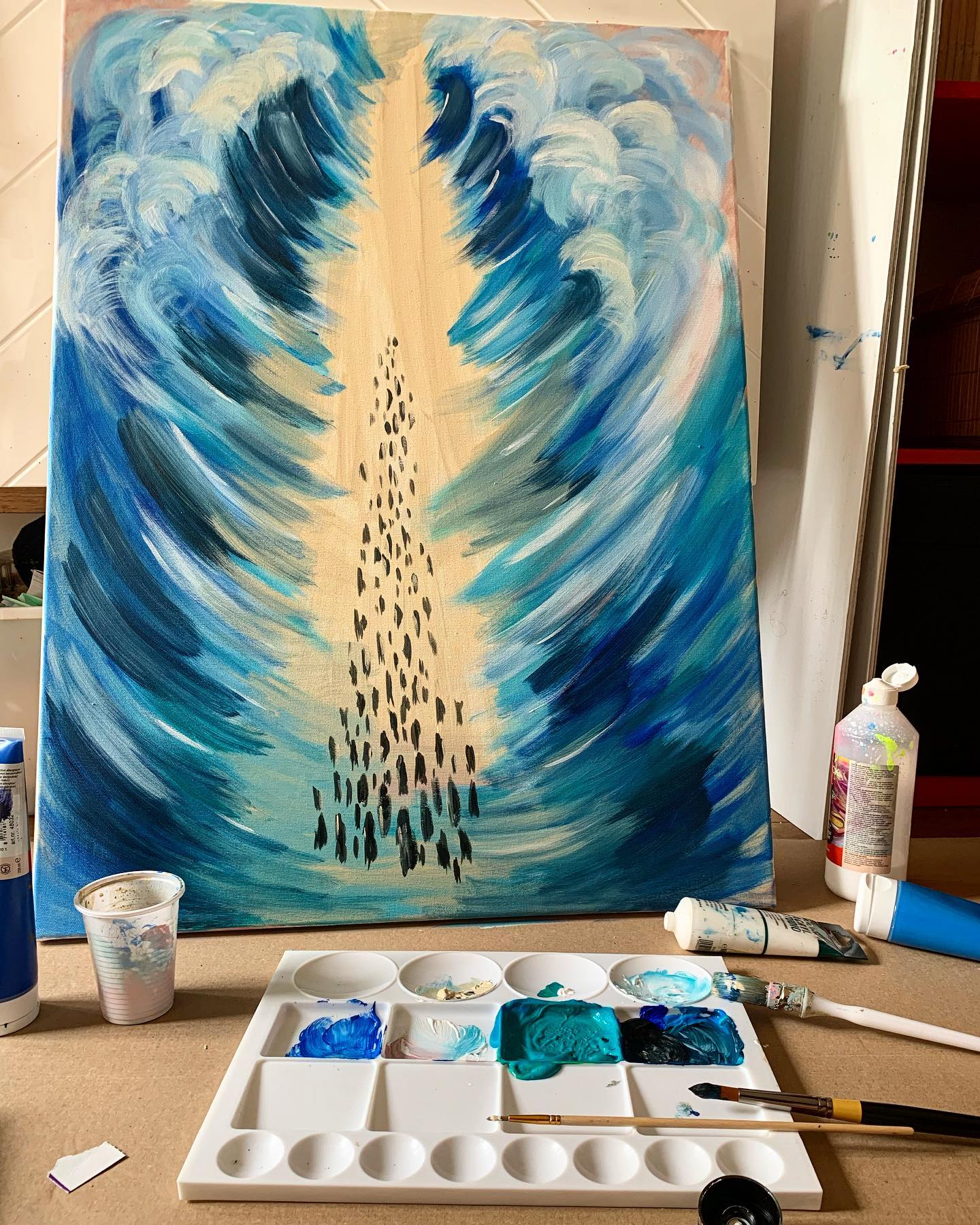 Tableau le passage de la mer rouge , peinture acrylique, impression sur plexiglass